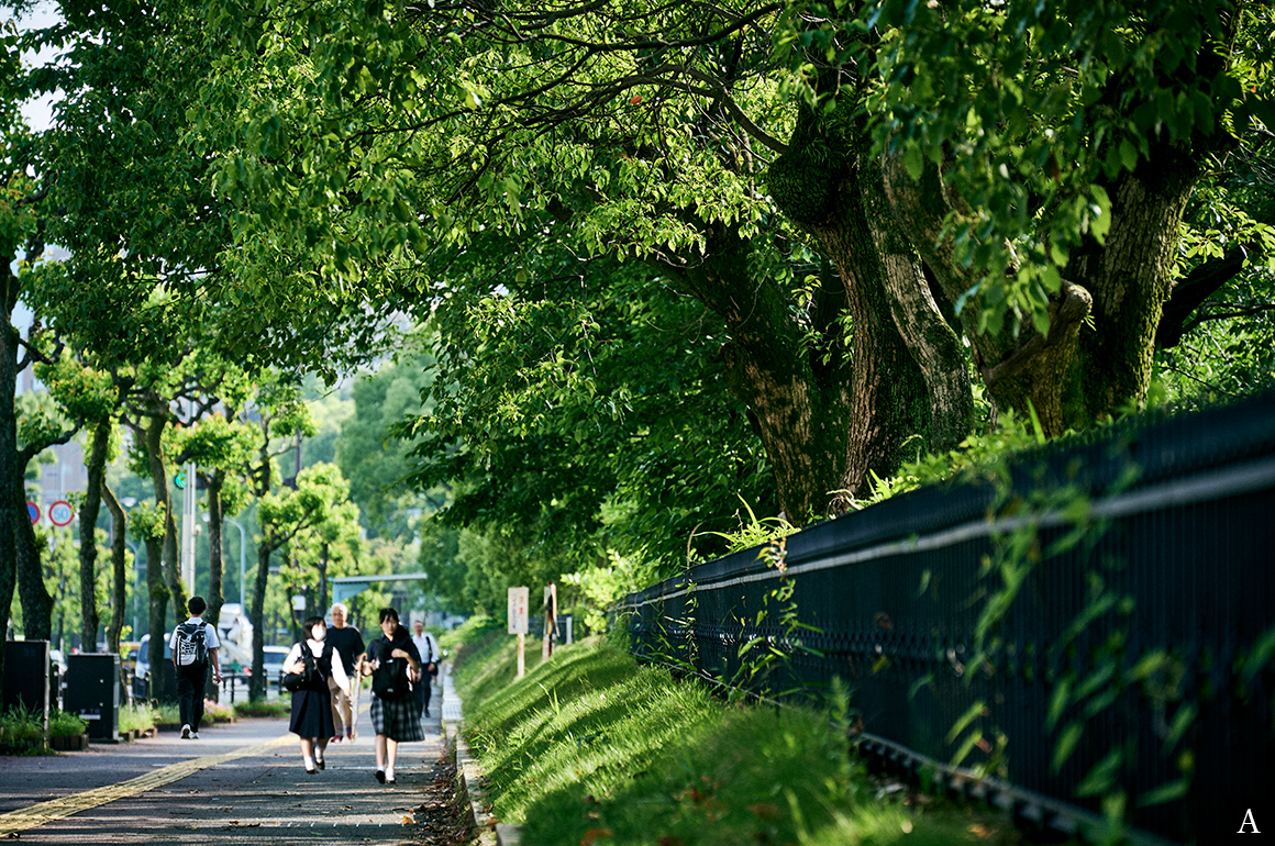 ナンキンハゼの並木道、緑豊かな学び舎、