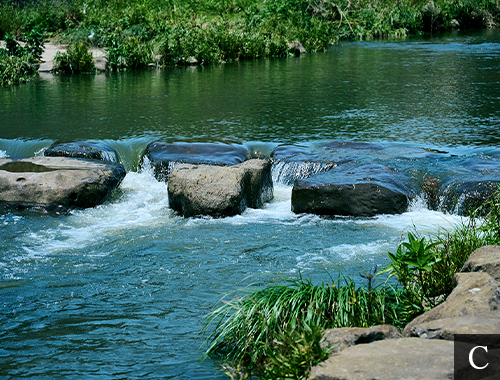 A:現地周辺イメージ(文教通り) /B:市立山里小学校/C:現地周辺イメージ(浦上川)