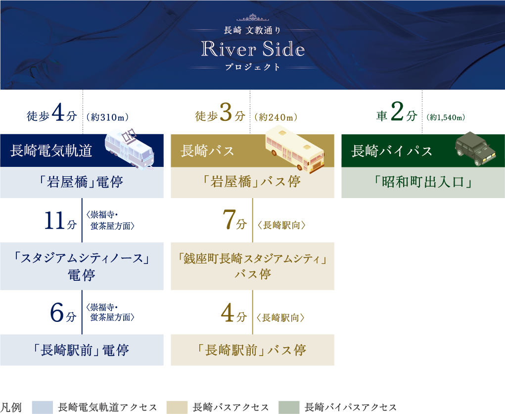 | ファミリーマート 長崎大橋店 | 徒歩5分/約360m |